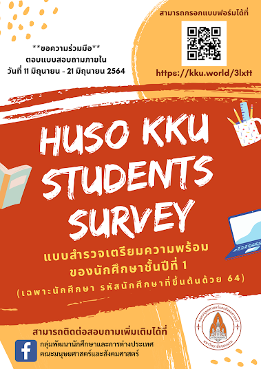 นักศึกษาใหม่ หลักสูตรเอเชียตะวันออกเฉียงใต้ศึกษา คณะมนุษยศาสตร์และสังคมศาสตร์ มหาวิทยาลัยขอนแก่น รหัส 64 ขอให้สมัครเข้ากลุ่มเฟสบุ๊ค ของหลักสูตรฯ เพื่อการติดตามข่าวสารต่าง ๆ ของหลักสูตร และเตรียมความพร้อมก่อนเปิดเทอม ตามลิงก์นี้ https://kku.world/2boae รวมทั้งเข้าไปตอบแบบสำรวจการเตรียมความพร้อมสำหรับนักศึกษาปี 1 ของกลุ่มพัฒนานักศึกษาและการต่างประเทศ คณะมนุษยศาสตร์และสังคมศาสตร์ ได้นี่ https://kku.world/3lxtt