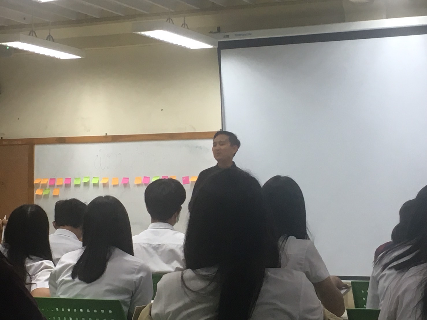 จากนั้น คุณทรงกลดก็ได้จัดกิจกรรม Workshop เพื่อให้นักศึกษามีความเข้าใจมากขึ้น เช่น กิจกรรมหนัง 6 ฉาก คือกิจกรรมที่ให้เรียงลำดับความสำคัญของเรื่องราว ให้มีความน่าสนใจมากที่สุดในความคิดของนักศึกษา หรือจะเป็นกิจกรรมที่ให้สัมภาษณ์เพื่อนร่วมชั้น โดยการตั้งคำถาม 3 ข้อ พร้อมกับใช้เทคนิคการสัมภาษณ์ร่วมด้วย