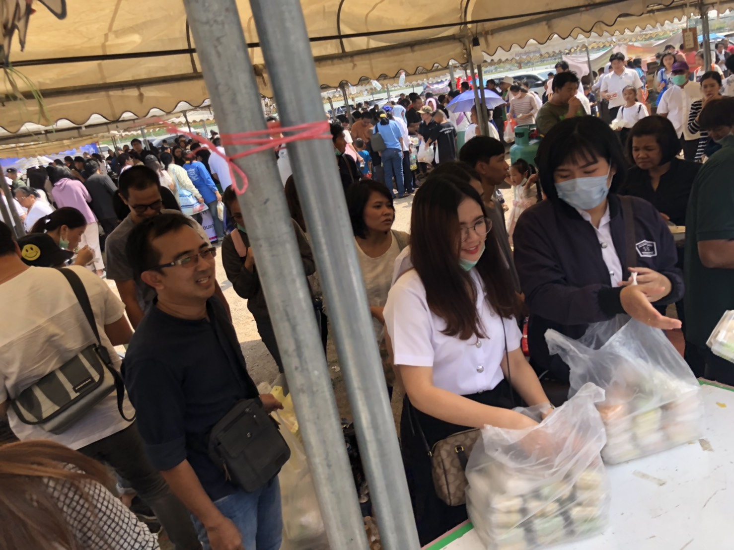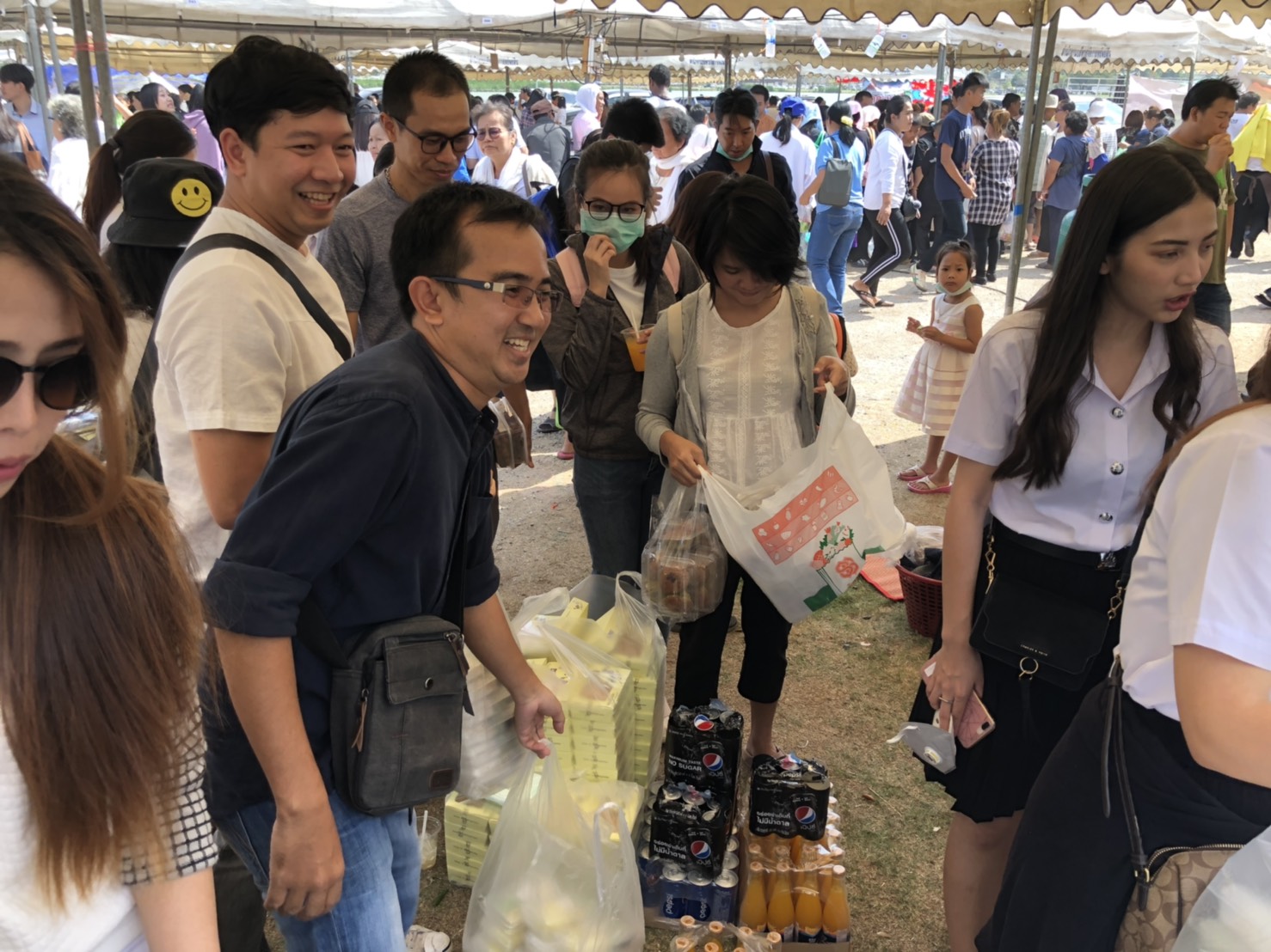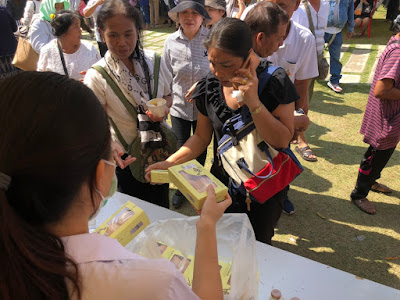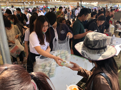 จากจำนวนการเปิดรับลงทะเบียนโรงทานต่างๆ พบว่ามีมากกว่า 500 บูท ที่มาร่วมบุญและจิตอาสาแจกจ่ายอาหาร เครื่องดื่ม ขนม ฯลฯ ให้แก่ผู้เข้าร่วมงานของหลวงพ่อคูน เป็นโอกาสอันดีที่พวกเราทั้งสองหลักสูตรได้มาทำบุญร่วมกัน โดยจัดหาอาหาร เช่น ซาลาเปา ขนมจีบ ขนมปัง จำนวนรวม 300 กล่อง และเครื่องดื่ม เช่น นมเปรี้ยว น้ำส้ม น้ำอัดลม นมถั่วเหลือง มาร่วมแจกด้วยตั้งแต่เช้า จนกระทั้งถึงเวลา 12.30 น. ทั้งอาหารและเครื่องดื่มจึงได้หมดลง