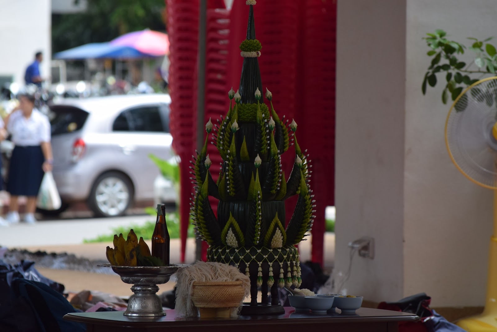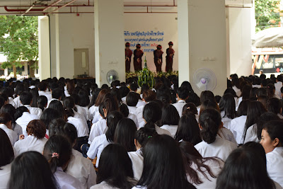 กิจกรรมในช่วงบ่าย น้องใหม่เข้าร่วมในพิธีสักการะบูชาพระพุทธปฐมปวัตตญาณ และบายศรีสู่ขวัญน้องใหม่ โดยมีผู้บริหาร คณาจารย์ และนักศึกษารุ่นพี่ผูกข้อมือรับขวัญน้องใหม่ของคณะมนุษยศาสตร์และสังคมศาสตร์ เป็นอันเสร็จพิธีในวันนี้