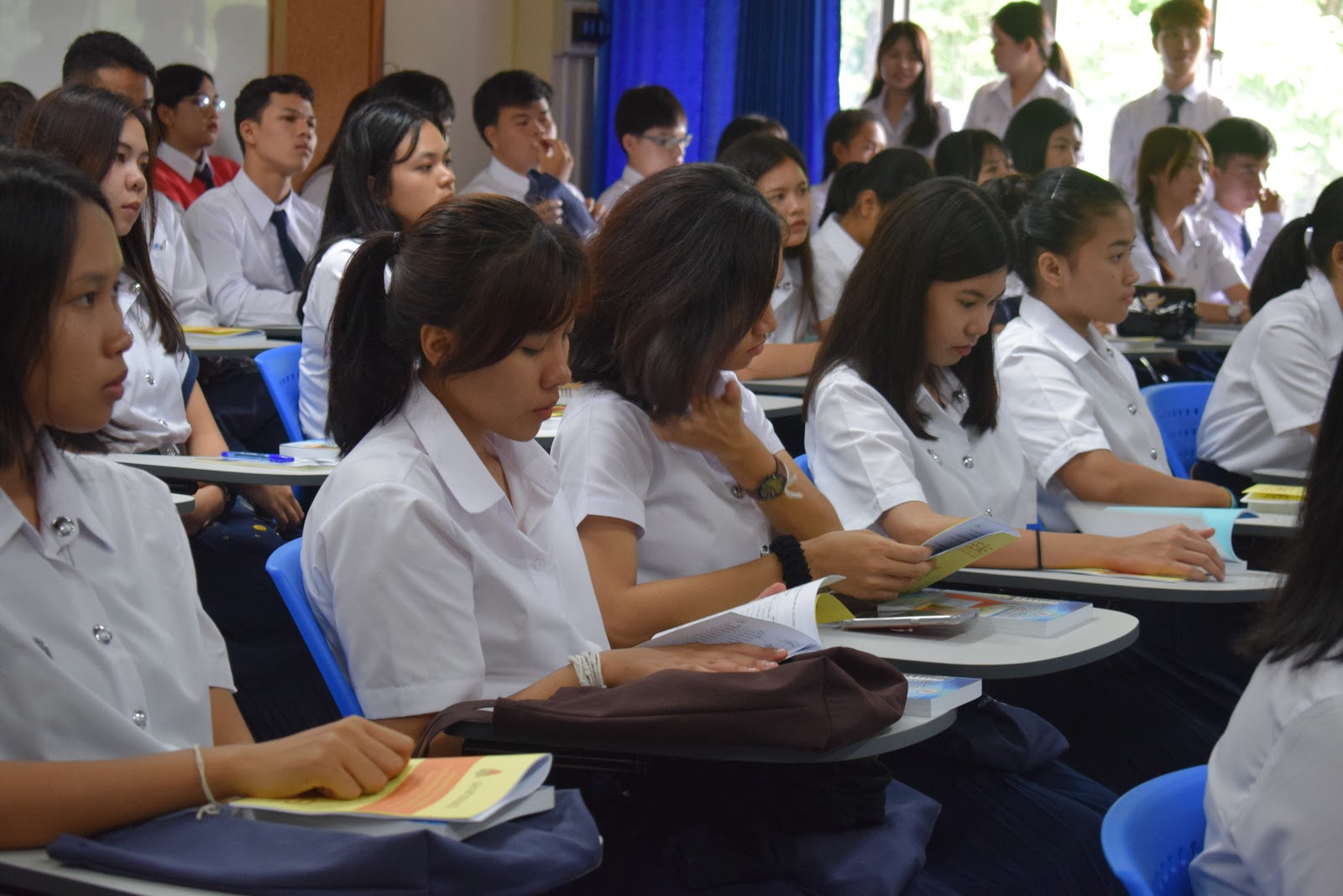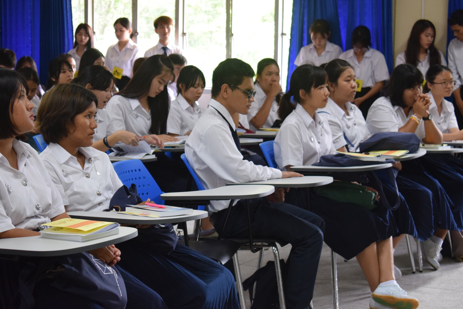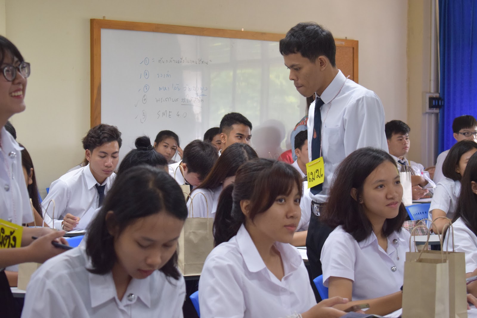 และเป็นที่น่ายินดียิ่งที่น้องๆ หลักสูตรเอเชียตะวันออกเฉียงใต้ศึกษา มาเกือบครบ ขาดแค่ 1 คน เท่านั้นเอง รวมจำนวน 54 คน พี่ๆ เป็นปลื้ม จัดกิจกรรมเพื่อน้องอย่างเต็มที่ โดยเฉพาะการพาน้องๆ ลงทะเบียน ส่วนใหญ่ลงทะเบียนได้สำเร็จเรียบร้อยดี มีบ้างที่ไม่สามารถลงทะเบียนบางวิชาได้ เนื่องจากจำนวนเต็ม ทางหลักสูตรได้ประสานให้เพิ่มจำนวนแล้ว นักศึกษาสามารถลงเพิ่มได้ในภายหลัง