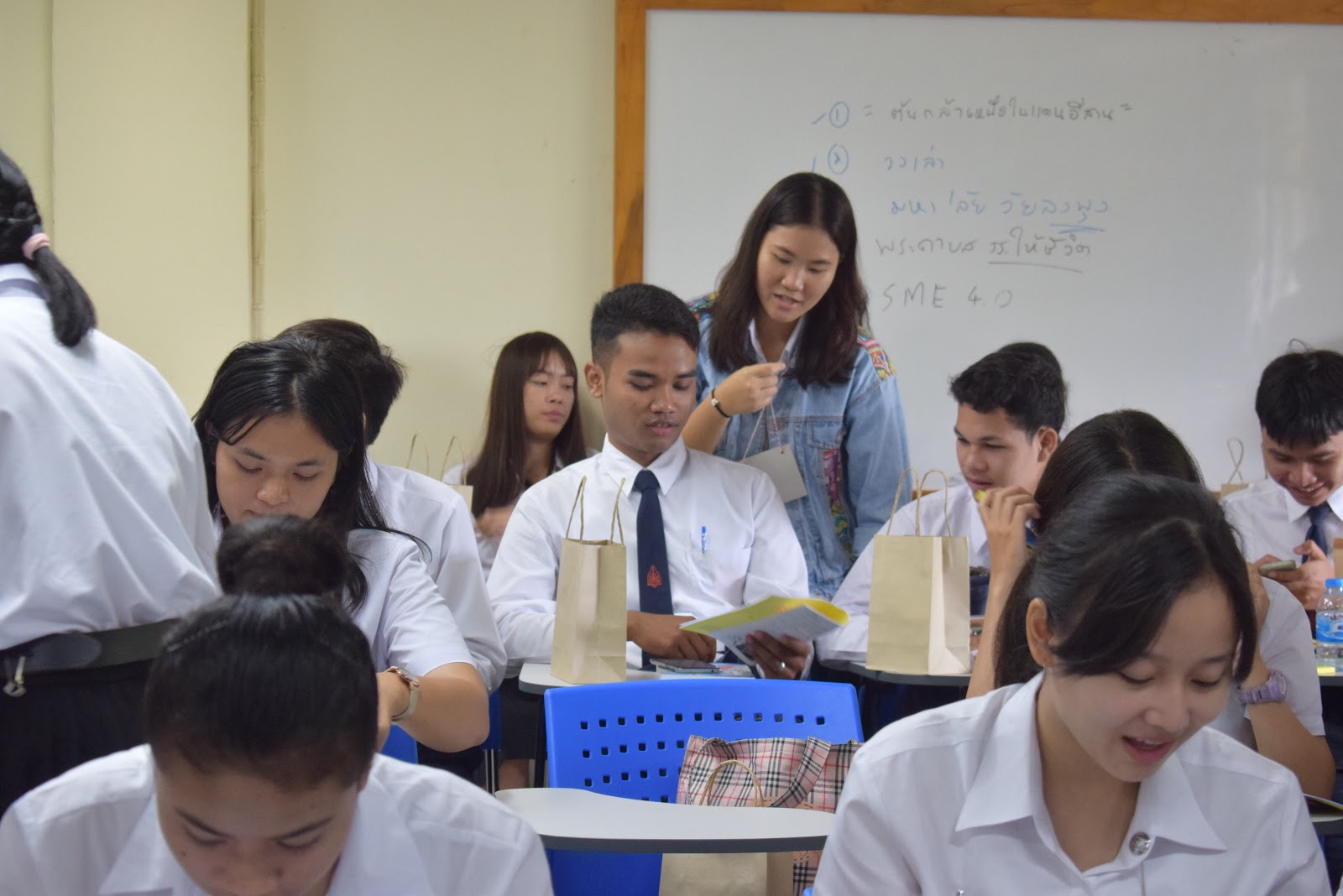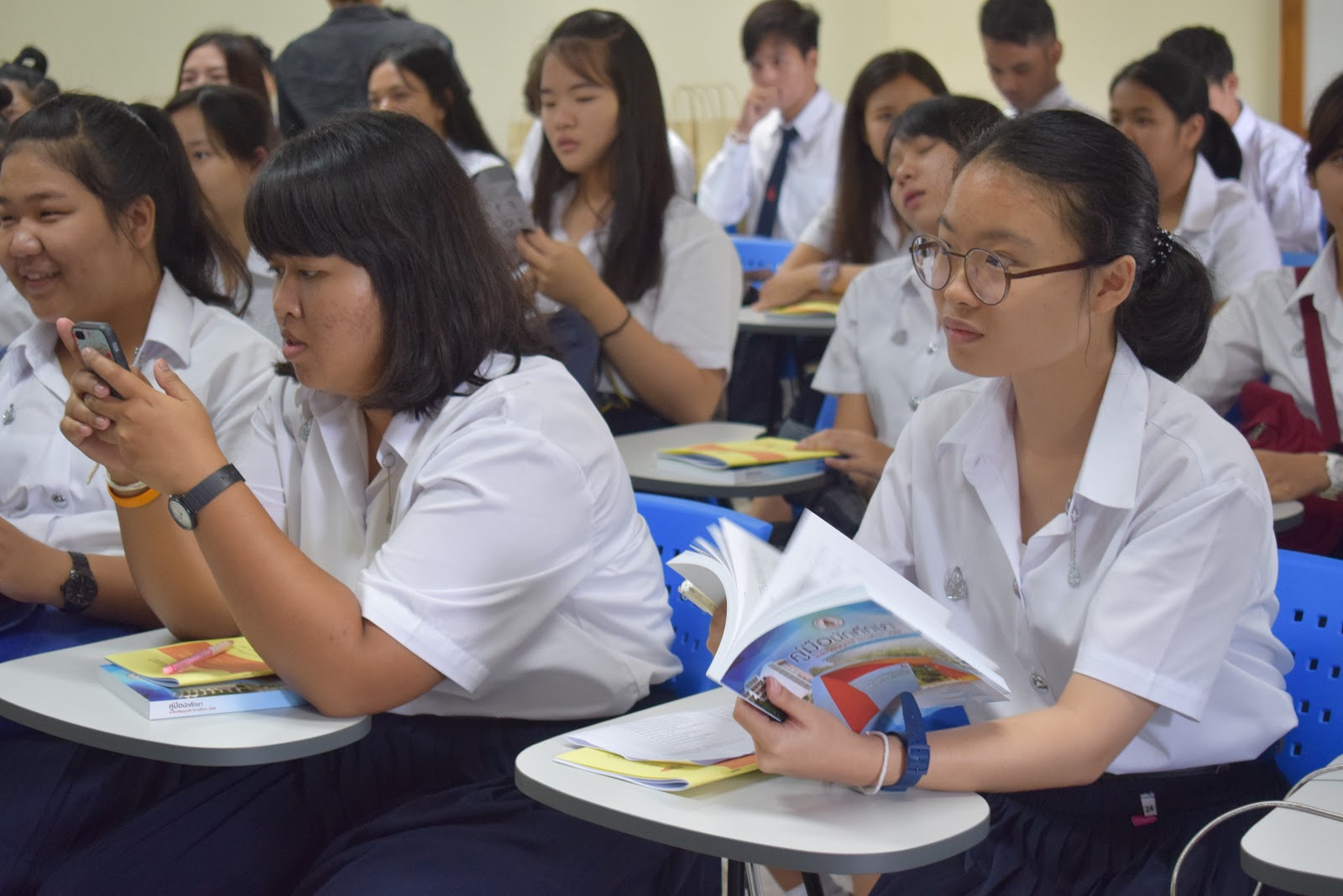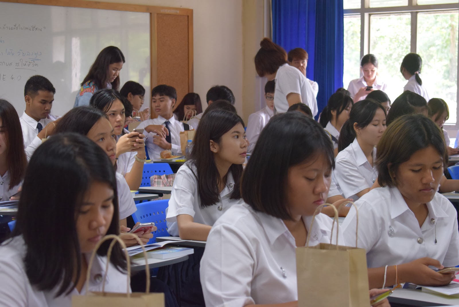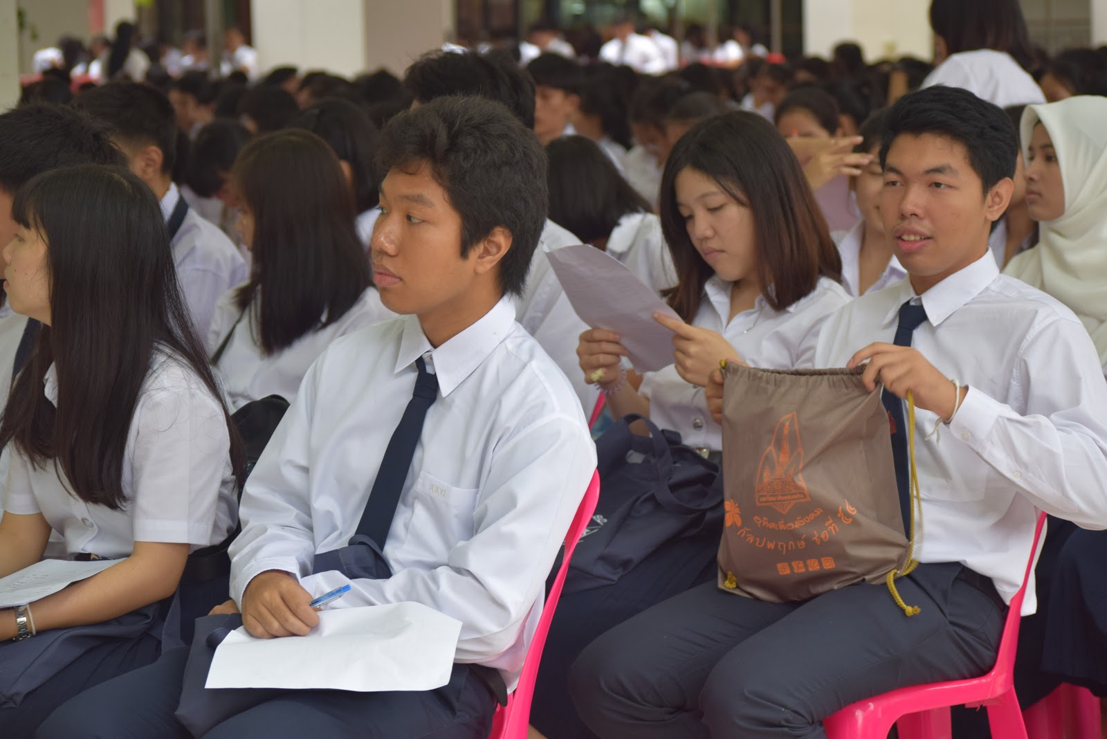 และเป็นที่น่ายินดียิ่งที่น้องๆ หลักสูตรเอเชียตะวันออกเฉียงใต้ศึกษา มาเกือบครบ ขาดแค่ 1 คน เท่านั้นเอง รวมจำนวน 54 คน พี่ๆ เป็นปลื้ม จัดกิจกรรมเพื่อน้องอย่างเต็มที่ โดยเฉพาะการพาน้องๆ ลงทะเบียน ส่วนใหญ่ลงทะเบียนได้สำเร็จเรียบร้อยดี มีบ้างที่ไม่สามารถลงทะเบียนบางวิชาได้ เนื่องจากจำนวนเต็ม ทางหลักสูตรได้ประสานให้เพิ่มจำนวนแล้ว นักศึกษาสามารถลงเพิ่มได้ในภายหลัง