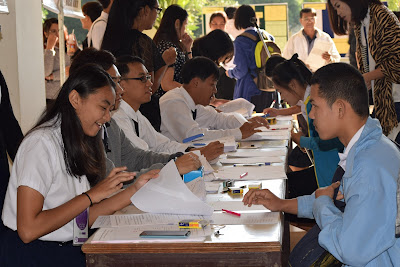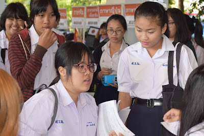 บรรยากาศวันนี้มีนักเรียนมารอสอบสัมภาษณ์กันอย่างคึกคัก โดยเฉพาะสาขาเอเชียตะวันออกเฉียงใต้ศึกษา มีผู้มีรายชื่อเข้าสอบสัมภาษณ์จำนวน 36 คน รุ่นนี้เป็นรุ่นที่ 2 แล้ว จึงไม่เงียบเหงาเหมือนรุ่นที่ผ่านมา เพราะมีพี่ๆ รุ่นแรกของหลักสูตรมารอรับน้องอย่างอบอุ่น