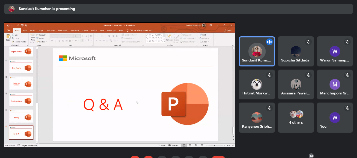 ในช่วงต่อมาวิทยากรได้นำเข้าสู่ช่วงอบรมการใช้โปรแกรม Microsoft PowerPoint ซึ่งเป็นโปรแกรมคอมพิวเตอร์สำหรับการทำสื่อการนำเสนอต่าง ๆ โดยวิทยากรได้แนะนำเครื่องมือและคำสั่งต่าง ๆ ที่ช่วยในการอำนวยความสะดวกในการใช้โปรแกรม ได้แก่ เครื่องมืออัพโหลดรูปภาพผ่าน Search Engine ของโปรแกรม เครื่องมือลบภาพพื้นหลัง (Remove Background) เครื่องมือสร้างภาพเคลื่อนที่ให้กับวัตถุ ภาพ หรือตัวอักษร เครื่องมือปรับแต่งรูปภาพในรูปทรงต่าง ๆ เครื่องมือไม้บรรทัดสำหรับการวาดเส้น เครื่องมือต่าง ๆ ในส่วน Taskbar ที่เป็นประโยชน์ต่อการใช้โปรแกรม เครื่องมือนำเข้าวิดีโอจากคลังภาพและอินเทอร์เน็ตด้วย Search Engine ของโปรแกรม การบีบอัดไฟล์วิดีโอเพื่อความสะดวกในการนำเสนองาน ไปจนถึงการทำแอนิเมชั่นต่าง ๆ เพื่อสร้างความประทับใจในการนำเสนองาน